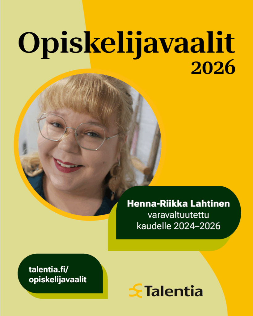 - 1.3.2026 Äänioikeus määräytyy, eli kaikki viimeistään 1.3.2026 Talentiaan liittyneet opiskelijajäsenet saavat äänestää kevään opiskelijoiden liittovaltuustovaaleissa.