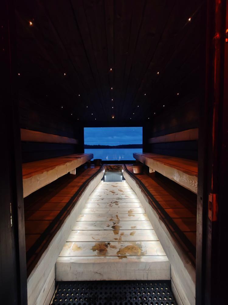 Lauttasaunan lempeissä löylyissä nautittiin Käyrälammen maisemista ja sopivan viileästä