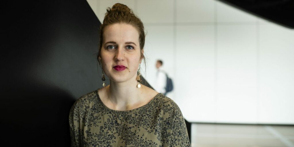 Vastikään Helsinkiin muuttanut Anniina Lahtinen saapuu haastatteluun Oodi-kirjastoon työpäivänsä jälkeen. Juttukuvien ottaminen kerää katseita toisilta kirjastovierailijoilta, valokuvauksen jälkeen istumme alas puuntuoksuisen keskustakirjaston toisessa kerroksessa.