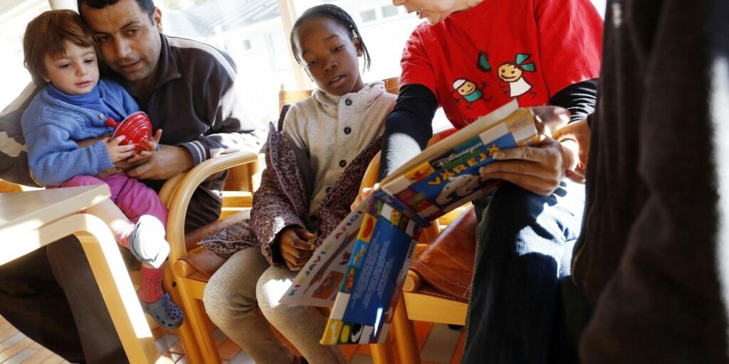 Asukkaissa on myös ihmisiä, joiden kanssa ei ole yhteistä kieltä lainkaan. Virallisissa yhteyksissä auttavat tulkit. Vapaaehtoisilla ja työntekijöillä pitää olla rohkeutta selittää ilmeillä, piirroksilla ja eleillä. Nina Ullven näyttää mallia. Keskuksen viitisenkymmentä lasta ei vielä käy koulua, joten käytävillä on vilske. Pari lasta istuu isossa muovilaatikossa, jota toiset lapset työntävät vauhdilla alas kävelyluiskaa.