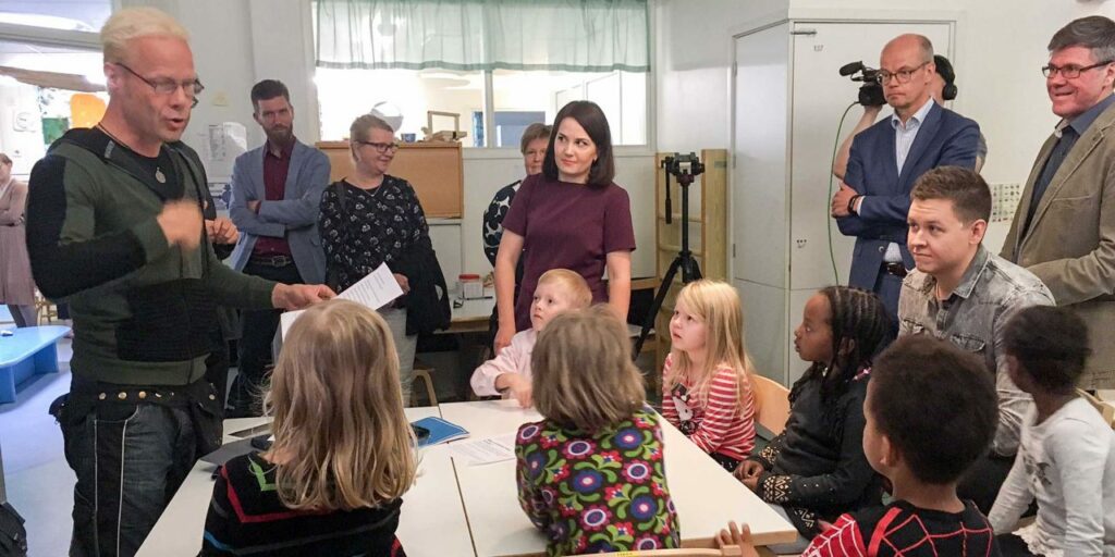 Koko joukko ministeriön ja opetushallituksen virkamiehiä oli kokoontunut helsinkiläiseen Merirastin päiväkotiin kuuntelemaan lasten laululeikkiä ja seuraamaan esikoululaisten opetustuokioita. Myös mediaa oli kutsuttu paikalle.
