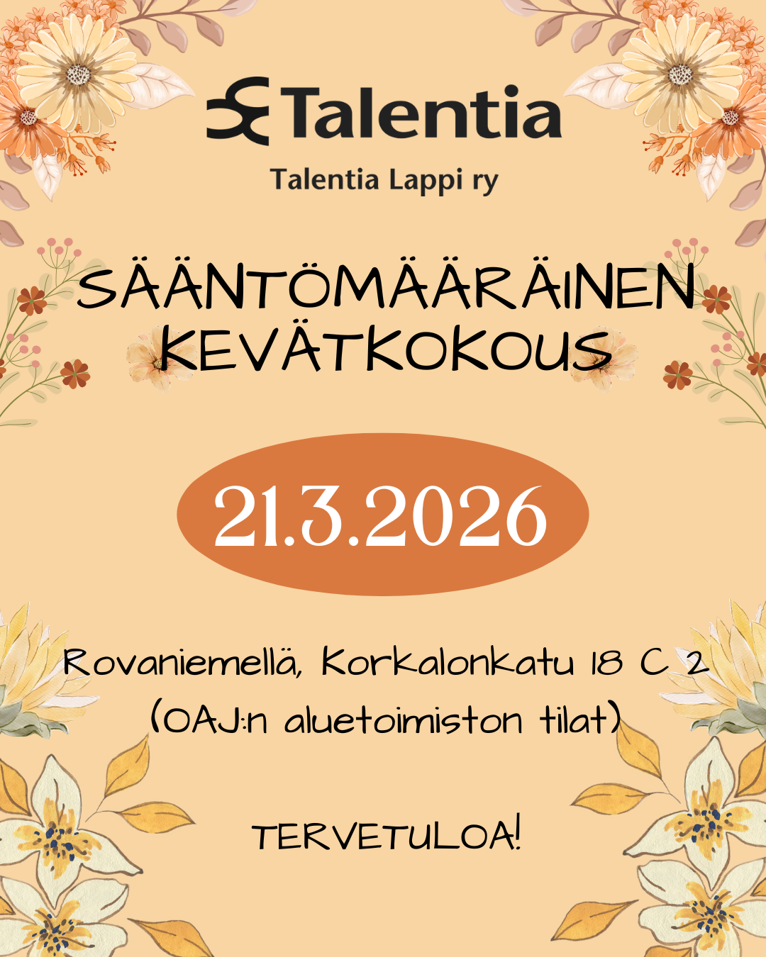 Tervetuloa Talentia Lappi ry:n sääntömääräiseen vuoden 2026 kevätkokoukseen Rovaniemelle!